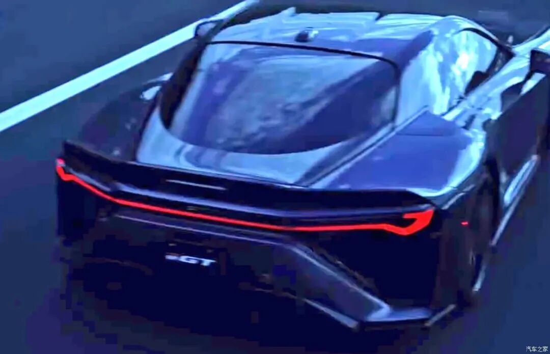 尾部的图片更加清晰,后窗采用了独特且极具辨识度的弧形设计,整个尾部异常的宽阔,组成X型的设计,贯穿式的尾灯样式,并有着夸张的导流风道,后扰流板的设计也相当独特。