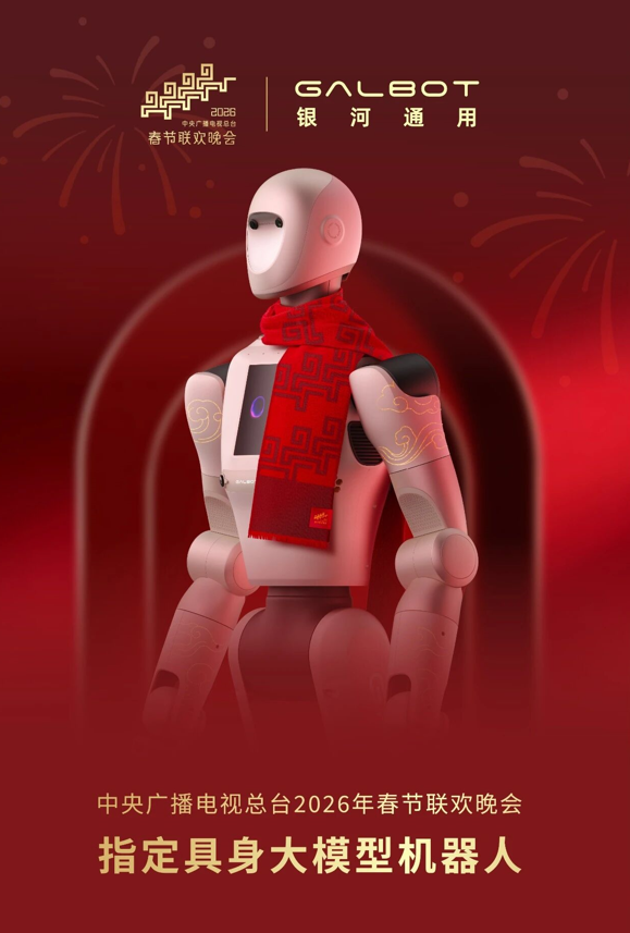 今年1月25日,中央广播电视总台官宣,银河通用成为总台2026年春节联欢晚会指定具身大模型机器人。